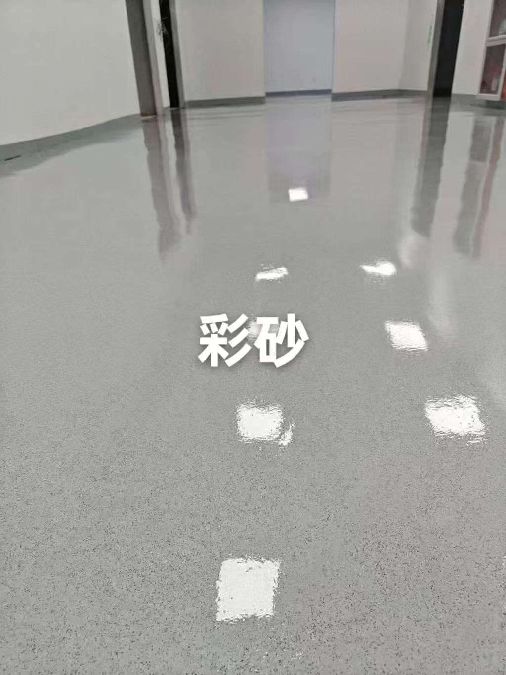 環(huán)氧彩砂自流平是水性雙組分厚涂型無縫地坪系統(tǒng),由環(huán)氧樹脂+固化劑+彩色石英/陶瓷砂為核心,配合助劑(流平、消泡、潤濕)制成;為無溶劑/低VOC配方,現(xiàn)場攪拌后自流平攤鋪,形成2–5mm厚的一體化地面,兼具環(huán)氧的強性能與彩砂的質感美學。